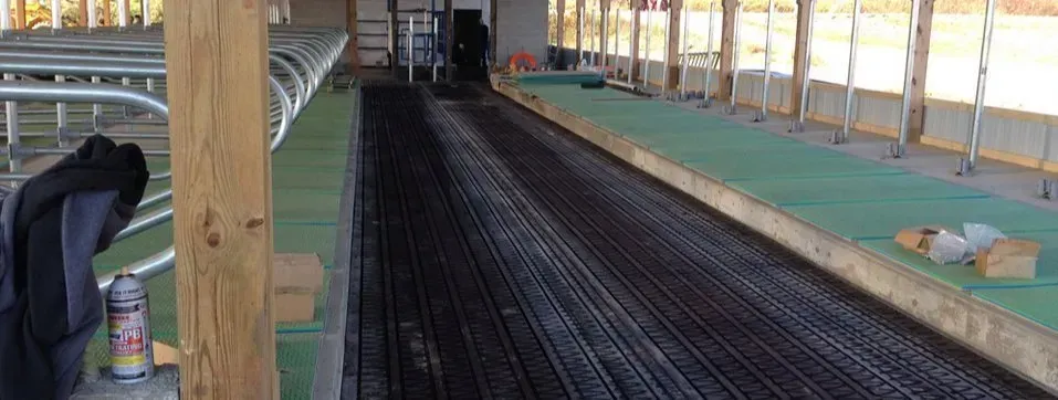 Browse our examples of the grooved rubber flooring, equestrian rubber mulch, horse stall mats & cow mats that we have installed for our clients. Our rubber alley mats and other rubber footing options are an investment you'll be glad you made. They are versatile, having a variety of uses in addition to providing comfort for your animals, such as ground cover for equipment or hay storage or even liners for man-made ponds. The possibilities are endless when you get your rubber footing, equestrian rubber mulch, and rubber flooring for livestock from Tim Gabel Belting! Don't forget to ask about barna nd manure scrapers to help keep your new mats clean!